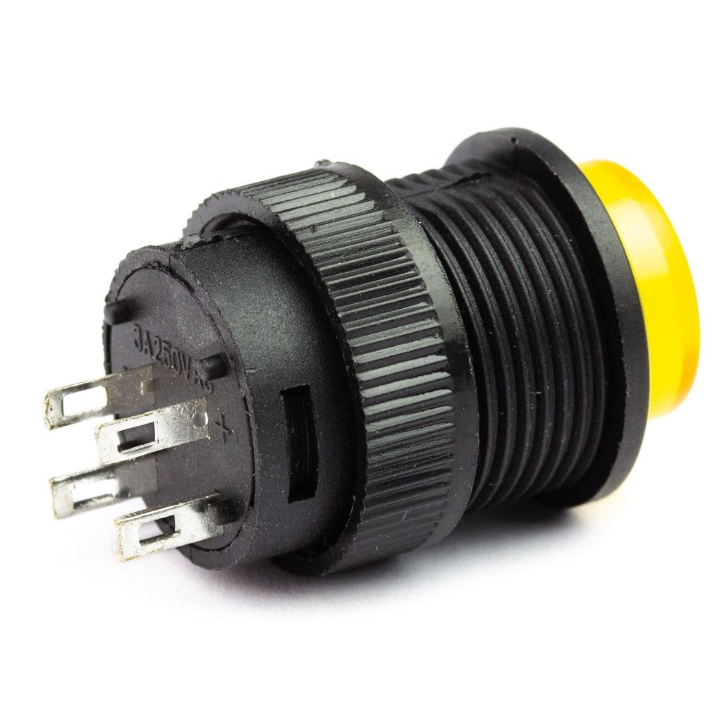 A 16mm yellow/orange illuminated momentary button, for situations when you need a small illuminated button!