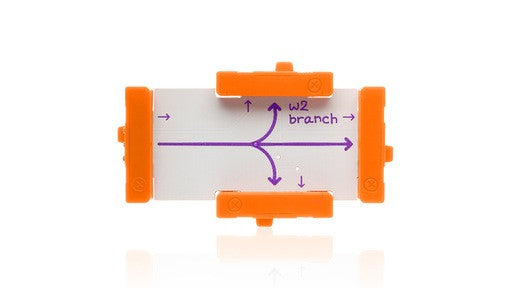 The branch Bit gives you more options for connecting your Bits: it lets you connect the output of a single Bit to as many as 3 others, oriented in different directions. Use it when you want to trigger light, sound and motion at the same time.