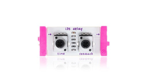 The delay Bit takes incoming audio and repeats it, like an echo. Delays can be long and spacey, like shouting into the Grand Canyon, or loud and crazy.