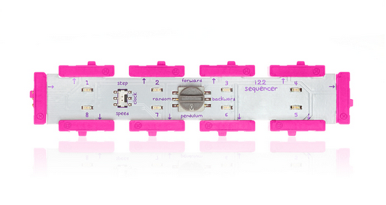 The sequencer allows you to connect up to eight outputs and control them in sequential patterns. Sequences that would take as long as 4 days to program without littleBits will only take you seconds!