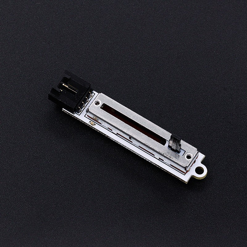 Octopus Slide Potentiometer Brick is a type of electronic building block module based on 10k linear sliding potentiometer. Sliding the potentiometer can change the voltage from 0V to VCC as well as the red LED on and off onboard. It can be used as resistor potentiometer, HID control panel, and electronic building block kit.