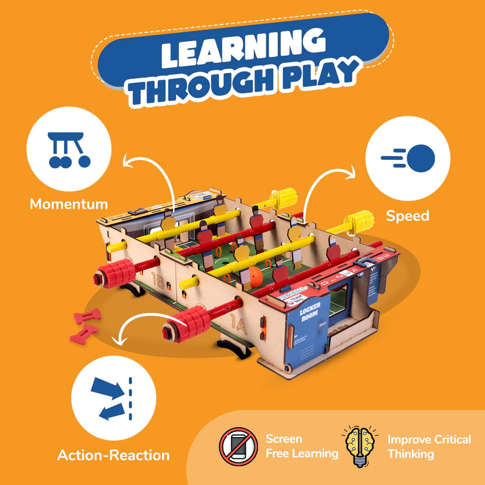 Foosball is a DIY game that allows your child to build his own foosball set and engage in a spirited game with playmates. Learn all about momentum, speed, action, and reaction, with this educational construction toy that also makes for an awesome gift.